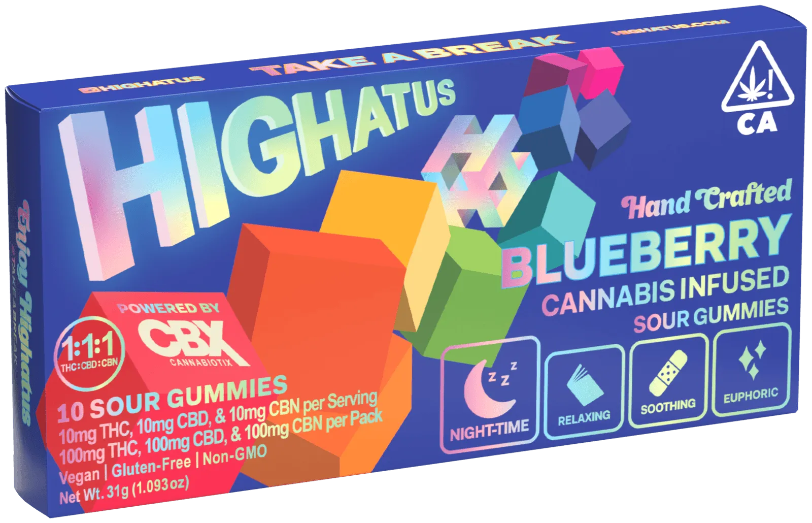 Thoughtfully formulated for those seeking nighttime relief and an incredible nights rest, our Blueberry gummy is infused with a 1:1:1 ratio of THC:CBN:CBD and a relaxing blend of Indica terpenes. Perfect for kicking back and unwinding, our sour Blueberry gummies will melt away your stress and have you counting sheep before your head hits the pillow.